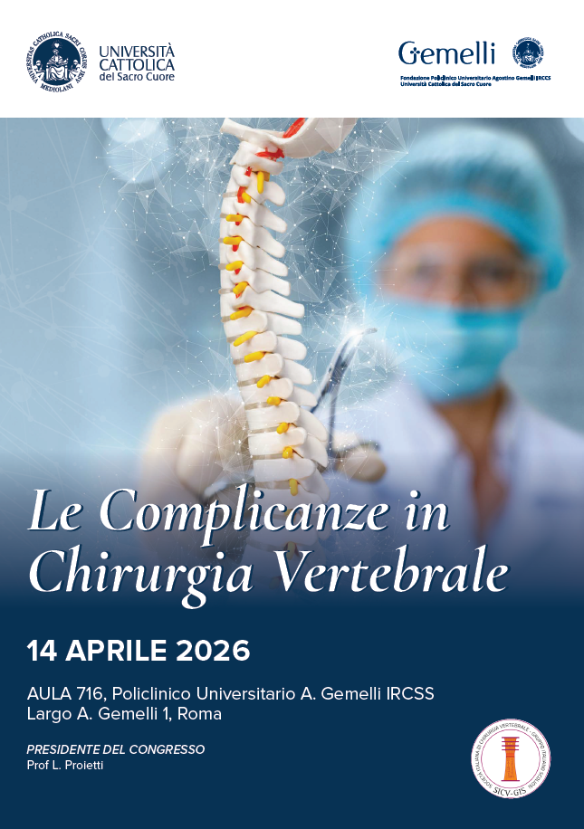 Il corso “Le Complicanze in Chirurgia Vertebrale” si terrà martedì 14 aprile 2026 presso l’Aula 716 del Policlinico Universitario A. Gemelli IRCSS a Largo Gemelli 1, Roma. Il corso si terrà dalle ore 8.30 alle ore 16.00.